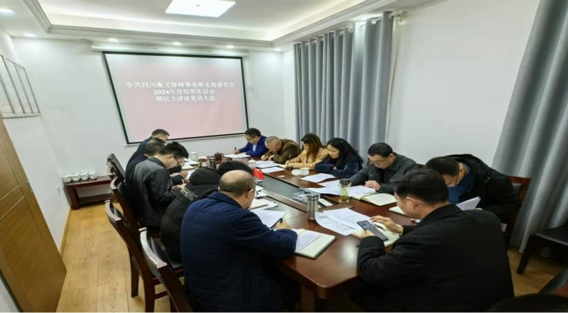 2025年3月22日,四川衡义律师事务所党支部召开2024年度组织生活会暨民主评议党员大会。县司法局党委委员副局长伏秀德同志到会指导。会议由支部书记徐辽同志主持,全体律师党员参加会议,入党积极分子、非党员律师、内勤人员列席会议。