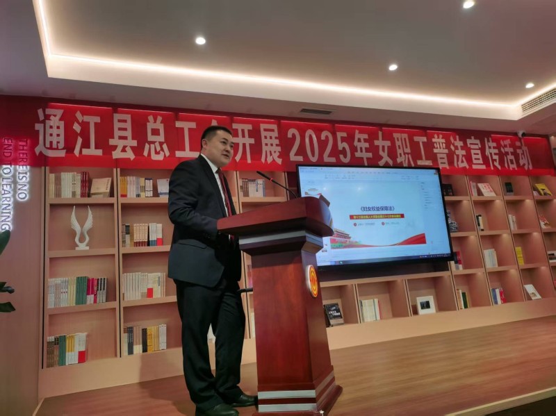 为贯彻落实《中华人民共和国妇女权益保障法》、《女职工劳动保护特别规定》等法律法规,增强女职工依法维权意识,构建和谐劳动关系,通江县总工会开展了2025年女职工普法宣传活动,即“情系女职工、 法在你身边”普法宣传活动,并特别邀请我所副主任、党员律师闫少宪到广纳金堂工业园区为各企业女职工代表进行法律宣讲。中共四川衡义律师事务所支部委员会支部书记徐辽律师、纪检委员张春林律师也受邀参与该活动。